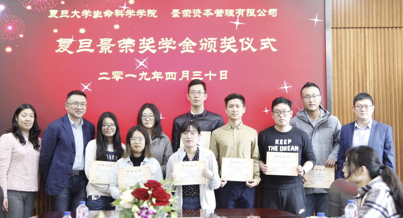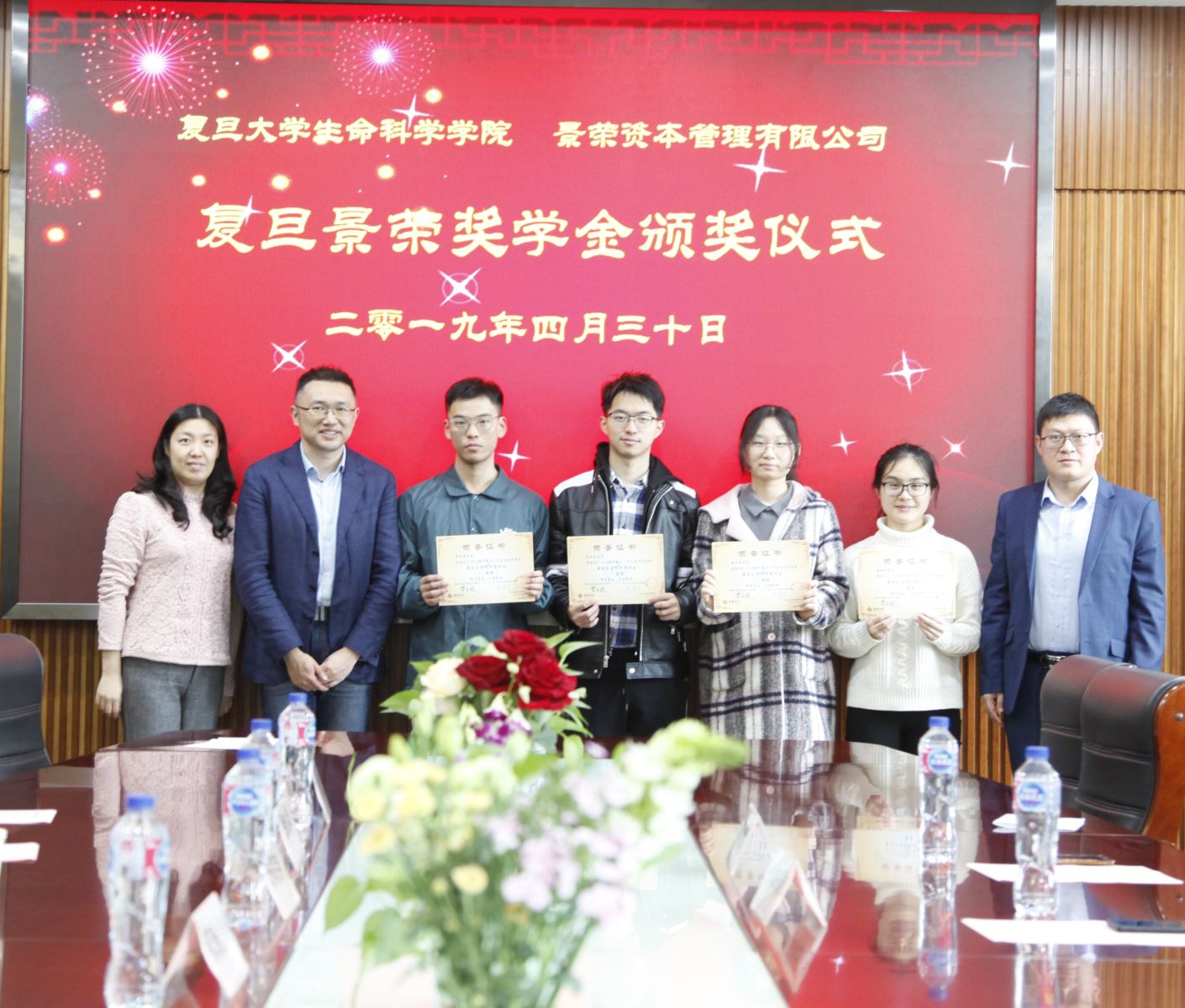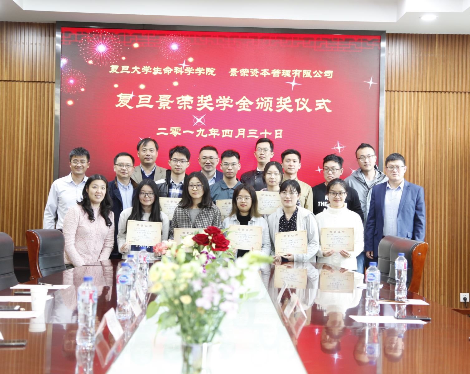 2019年4月30日中午,复旦景荣生命科学奖学金颁奖仪式在生命科学学院A208会议室顺利举行。复旦大学对外联络与发展处副处长陆颖丰,生命科学学院分党委书记陈浩明,分党委副书记余文博、丁澦,上海景荣资本副总裁、景旭创投创始合伙人、学院1997级校友钱庭栀,景旭创投投资总监、学院1997级校友时锋,景荣生命科学奖学金获奖学生等共同出席了颁奖仪式。会议由陈浩明书记主持。