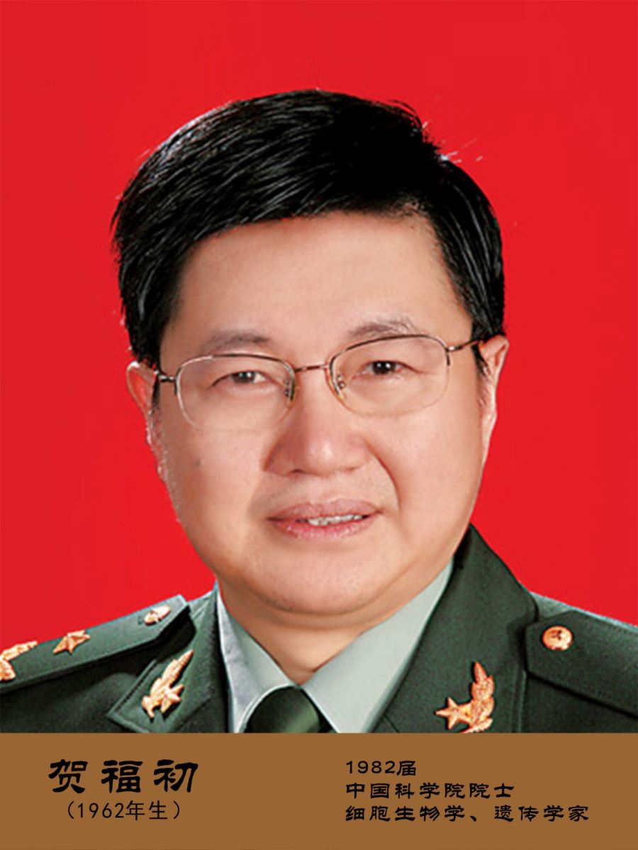 贺福初,国际著名细胞生物学、遗传学家,中国科学院院士。主要从事基因组学、蛋白质组学、生物信息学及系统生物学研究。现任中国人民解放军军事医学科学院院长、中央军委科学技术委员会副主任。