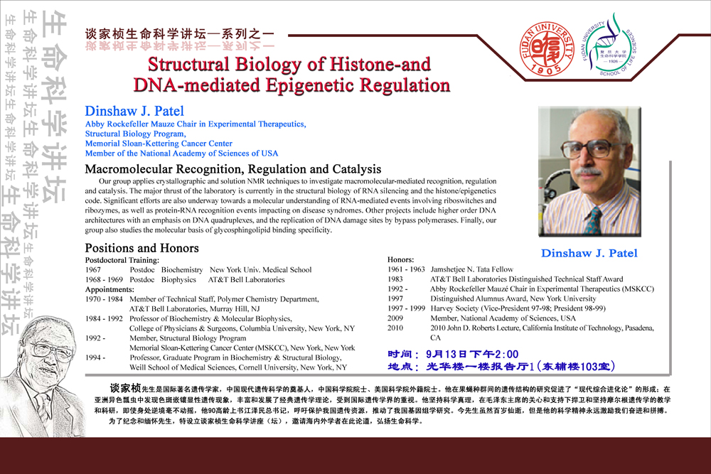 2011.9.13谈家桢生命科学讲坛之十七 Dinshaw J. Patel(美国科学院院士)