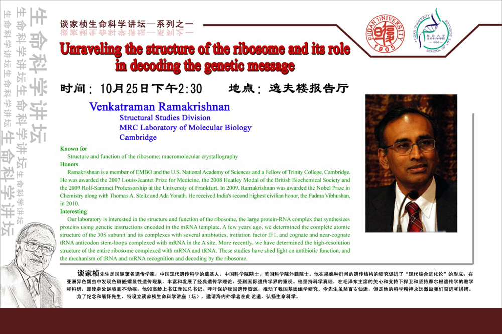 2011.10.25 谈家桢生命科学讲坛之二十一 Venkatraman Ramakrishnan(2009诺贝尔奖获得者)