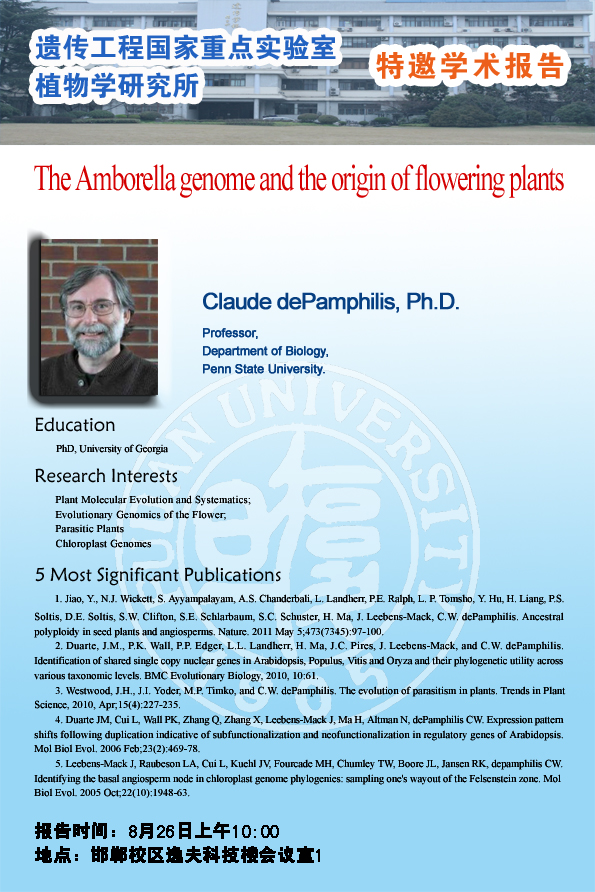 2013.08.26遗传工程国家重点实验室特邀学术报告 Claude dePamphilis
