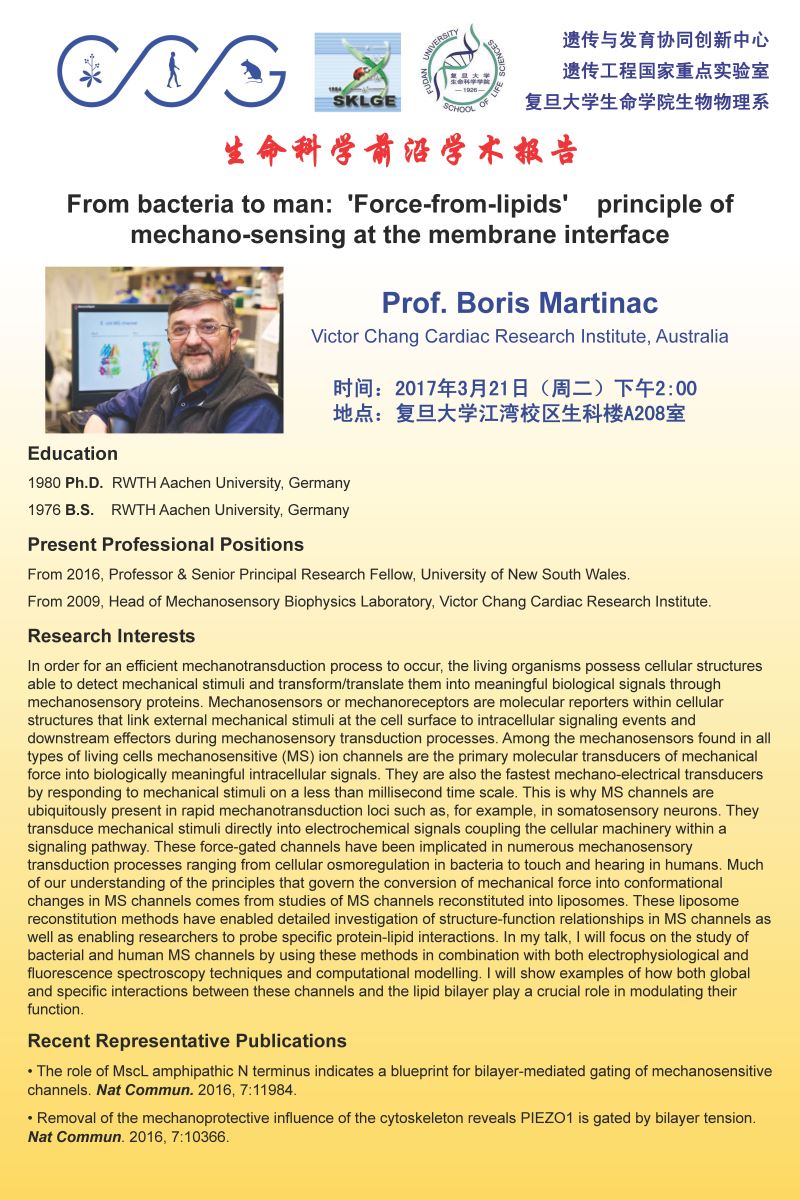 生命科学前沿学术报告【62】20170321:Prof. Boris Martinac