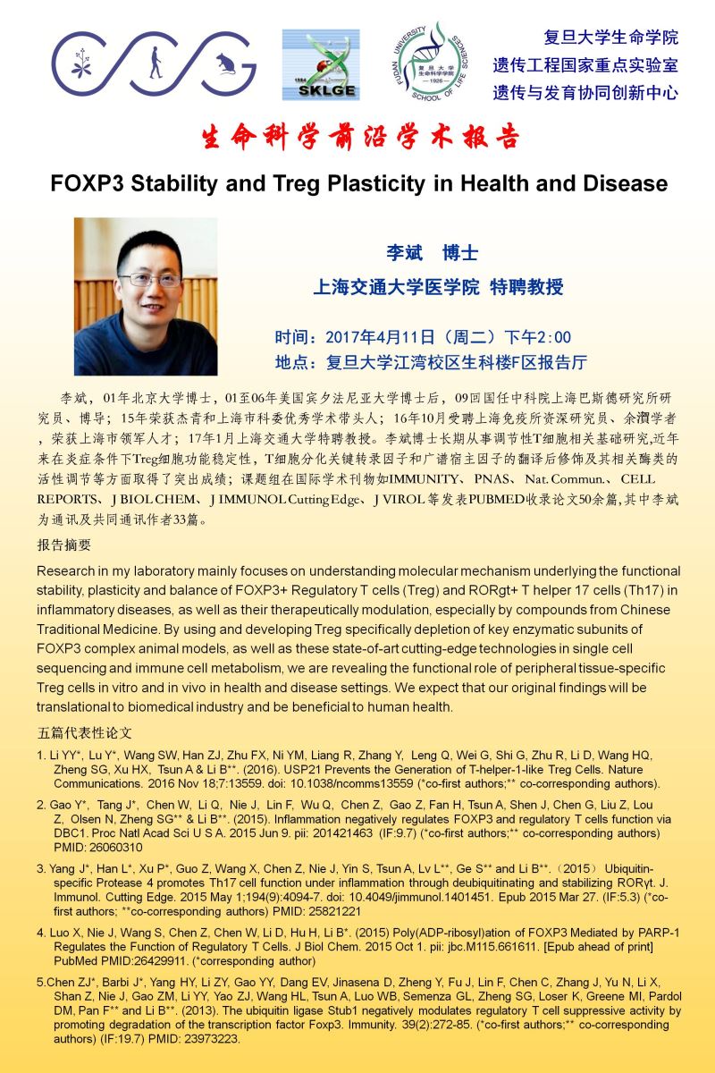 生命科学前沿学术报告【63】20170411:李斌教授 上海交通大学医学院上海免疫学研究所