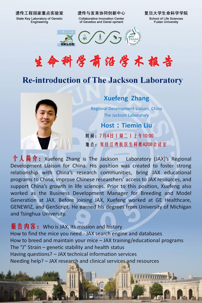 生命科学学术前沿讲坛【74】20170704:张雪峰教授(JAX, Regional Development Liaison for China)