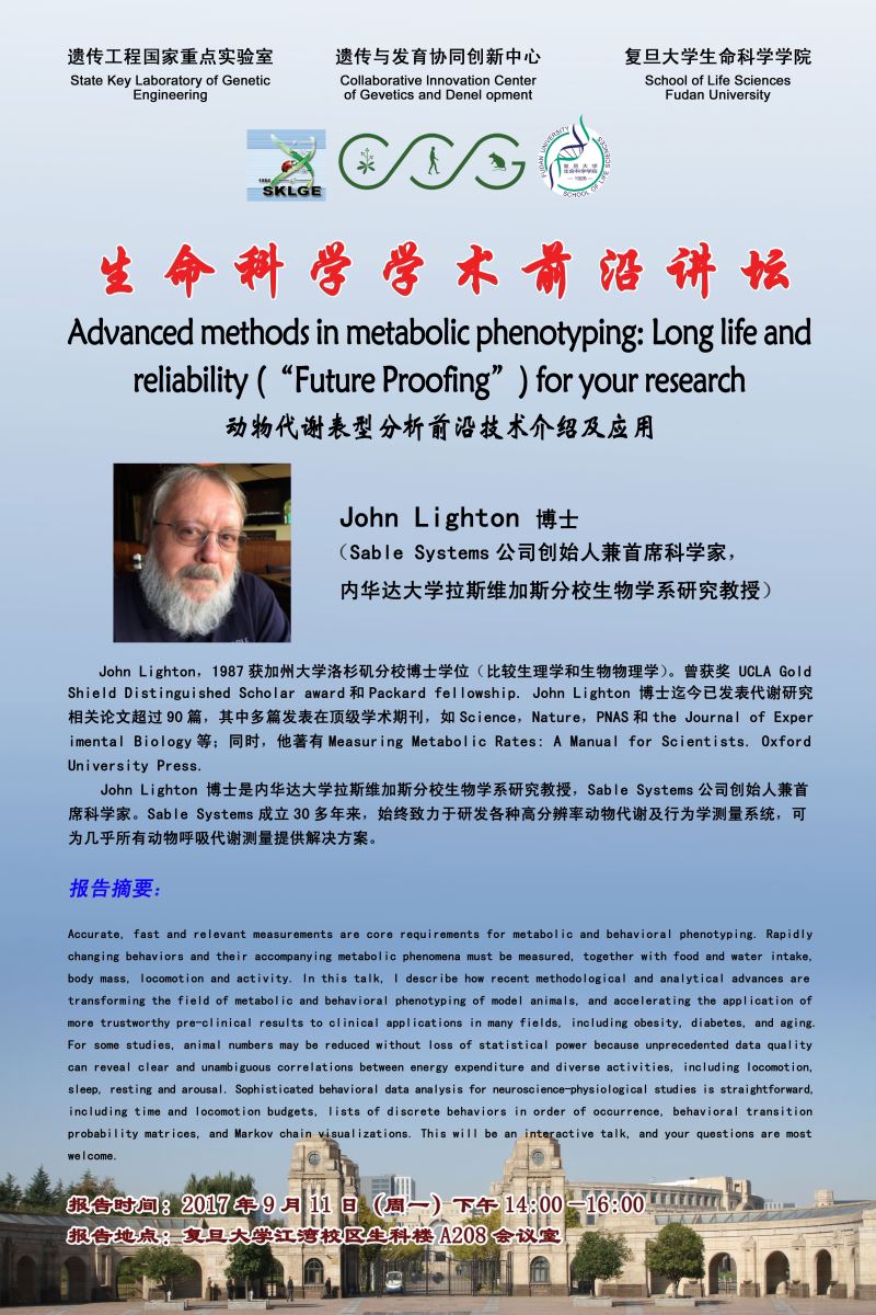 生命科学学术前沿讲坛【75】20170911:John Lighton 教授(内华达大学拉斯维加斯分校)
