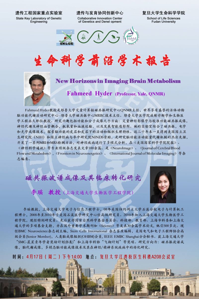 生命科学学术前沿讲坛【98】20180417:Fahmeed Hyder ( Yale, QNMR) 、李瑶(上交大)
