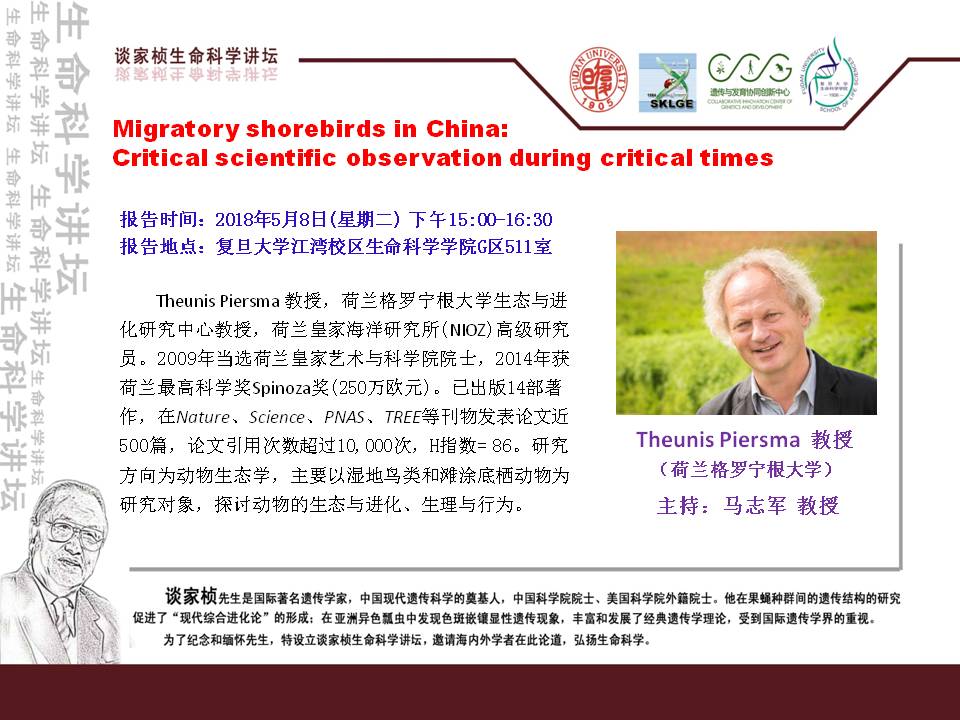 谈家桢生命科学讲坛【60】20180508:Theunis Piersma 教授(荷兰皇家艺术与科学学院院士,荷兰格罗宁根大学)