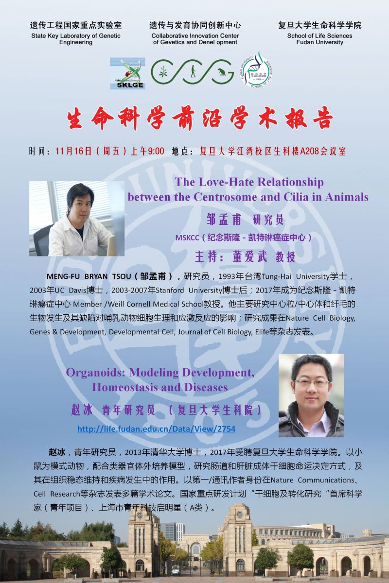 生命科学学术前沿讲坛【105】20181116:邹孟甫(MSKCC) 、赵冰(复旦生科院)