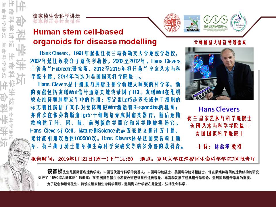 谈家桢生命科学讲坛20190121【72】:Hans Clevers 教授 (荷兰)