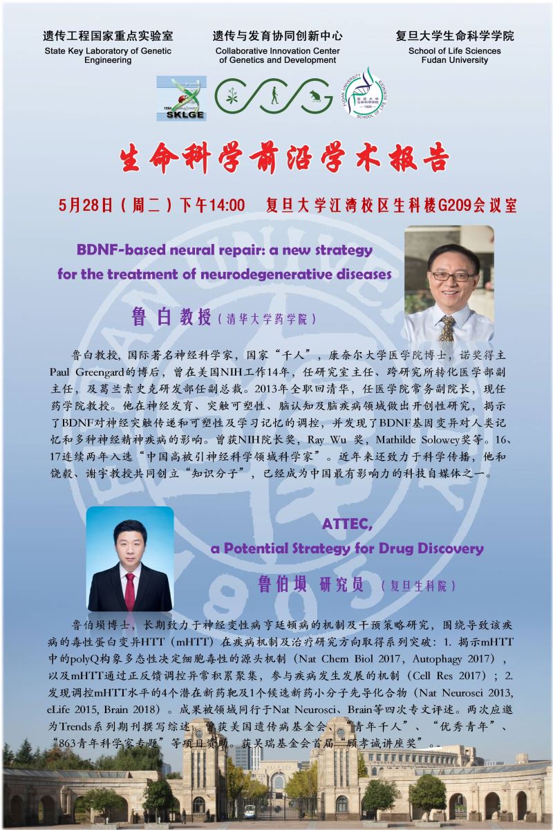 生命科学学术前沿讲坛【117】20190528:鲁白 研究员(清华大学药学院),鲁伯埙研究员(复旦生科院)