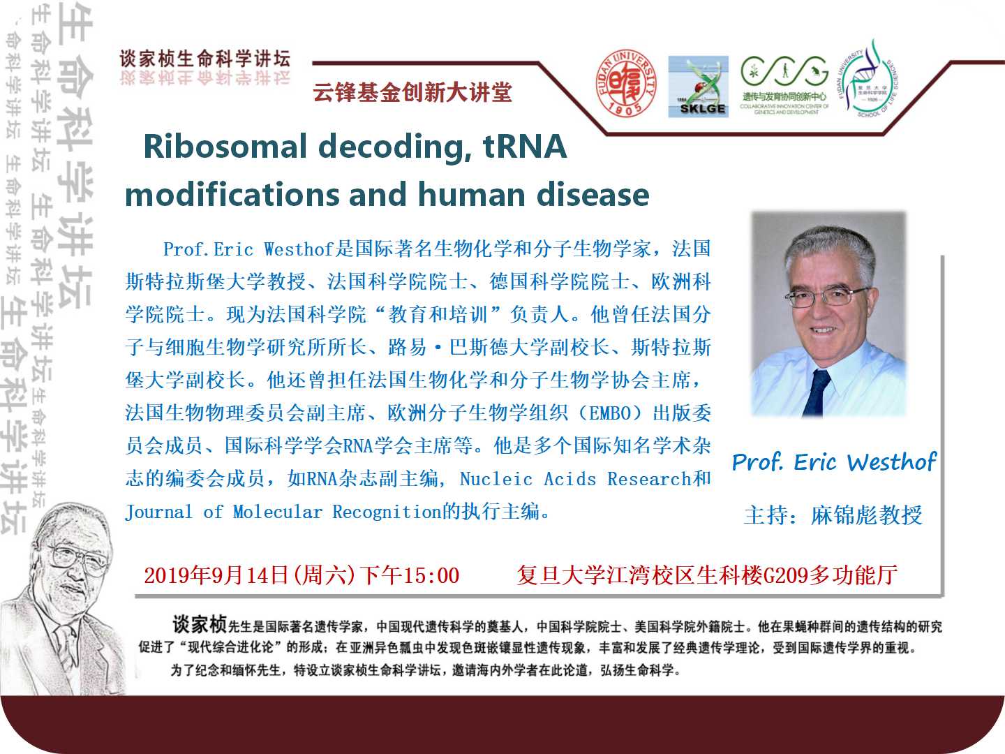 谈家桢生命科学讲坛20190914【79】:Eric Westhof 教授(法国斯特拉斯堡大学)