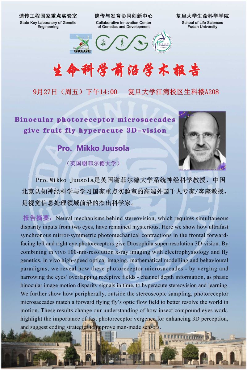生命科学学术前沿讲坛【119】20190927:Pro. Mikko Juusola (英国谢菲尔德大学)