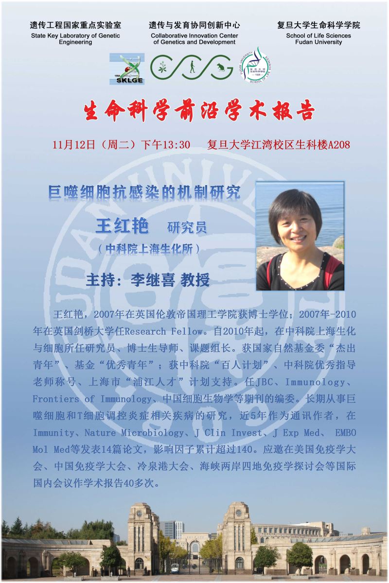 生命科学学术前沿讲坛【121】20191112:王红艳(中科院上海生化所)