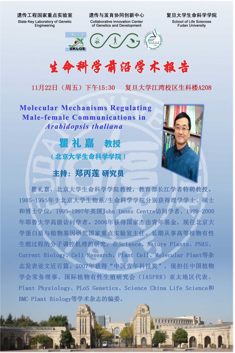 生命科学学术前沿讲坛【125】20191122:瞿礼嘉(北京大学)