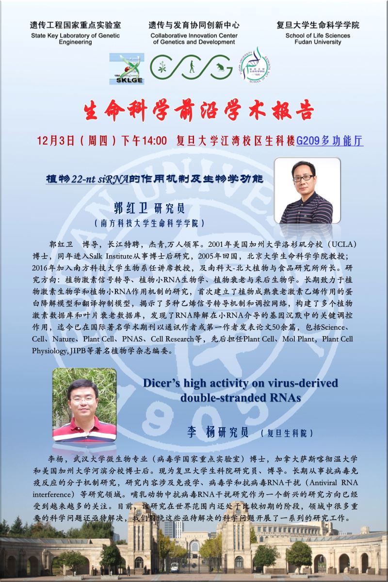 生命科学学术前沿讲坛【133】20201203:郭红卫研究员(南方科技大学),李杨(复旦生科院