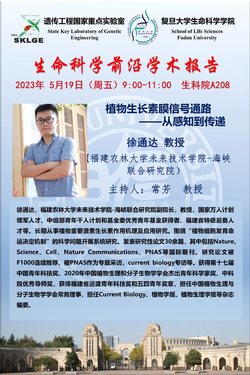 2场生命科学前沿学术报告-2023-5-19(周五)上午9:00,徐通达 教授,熊延 教授,均为福建农林大学