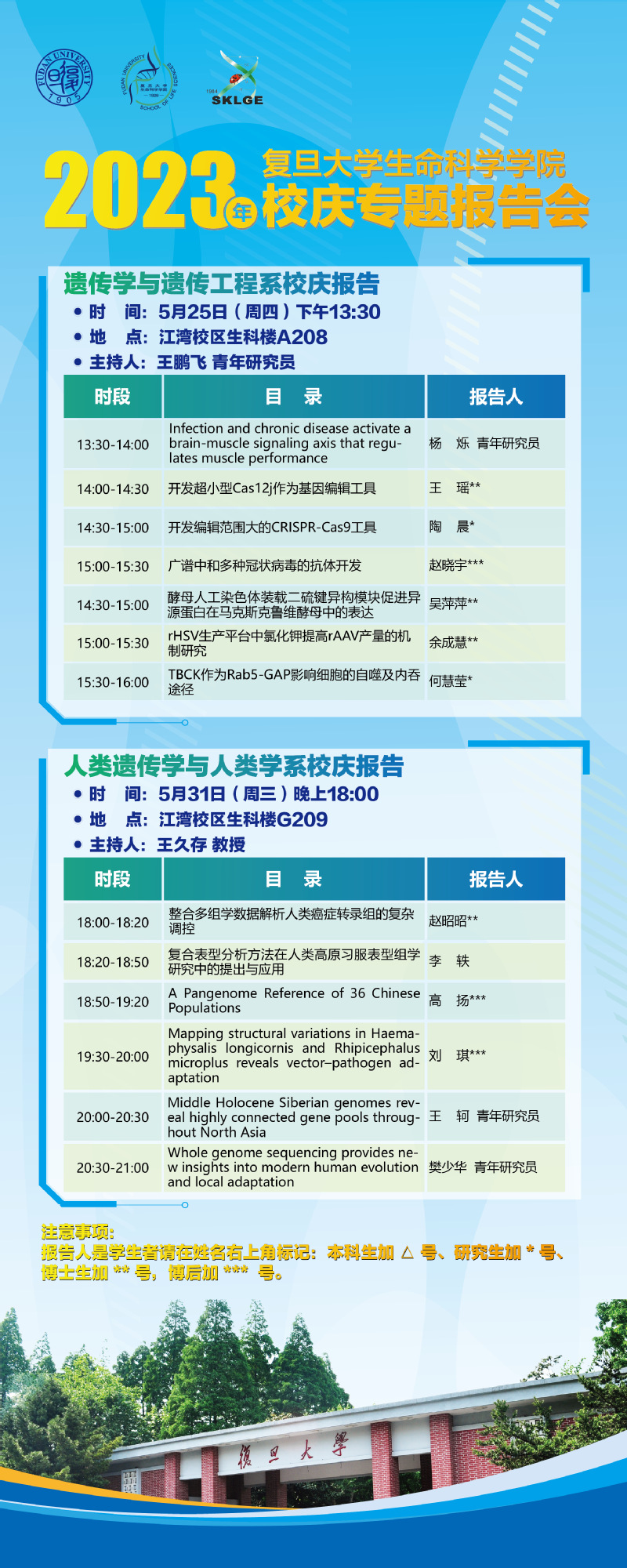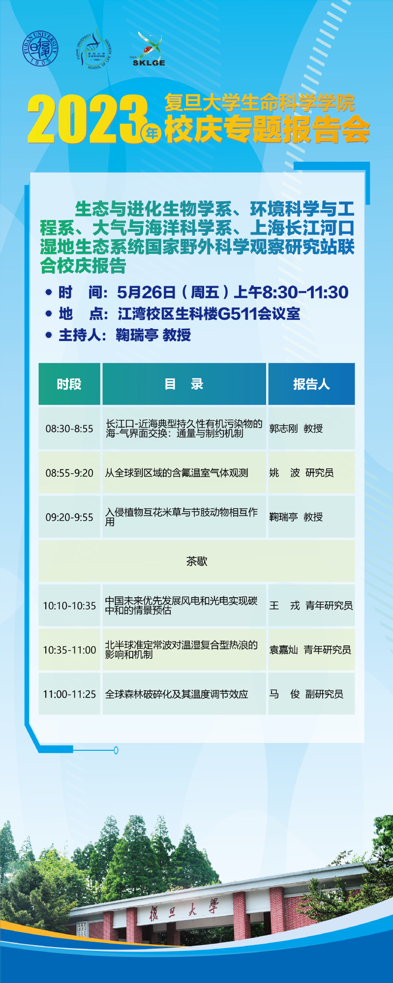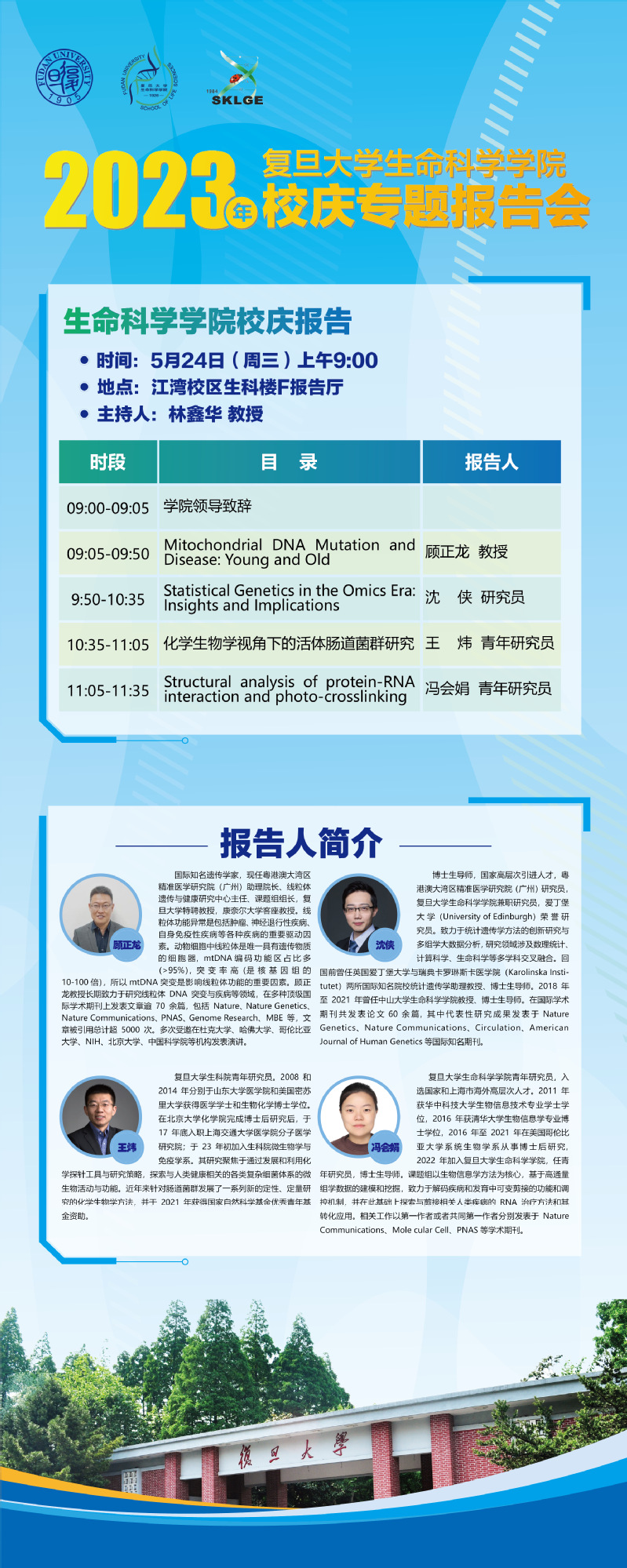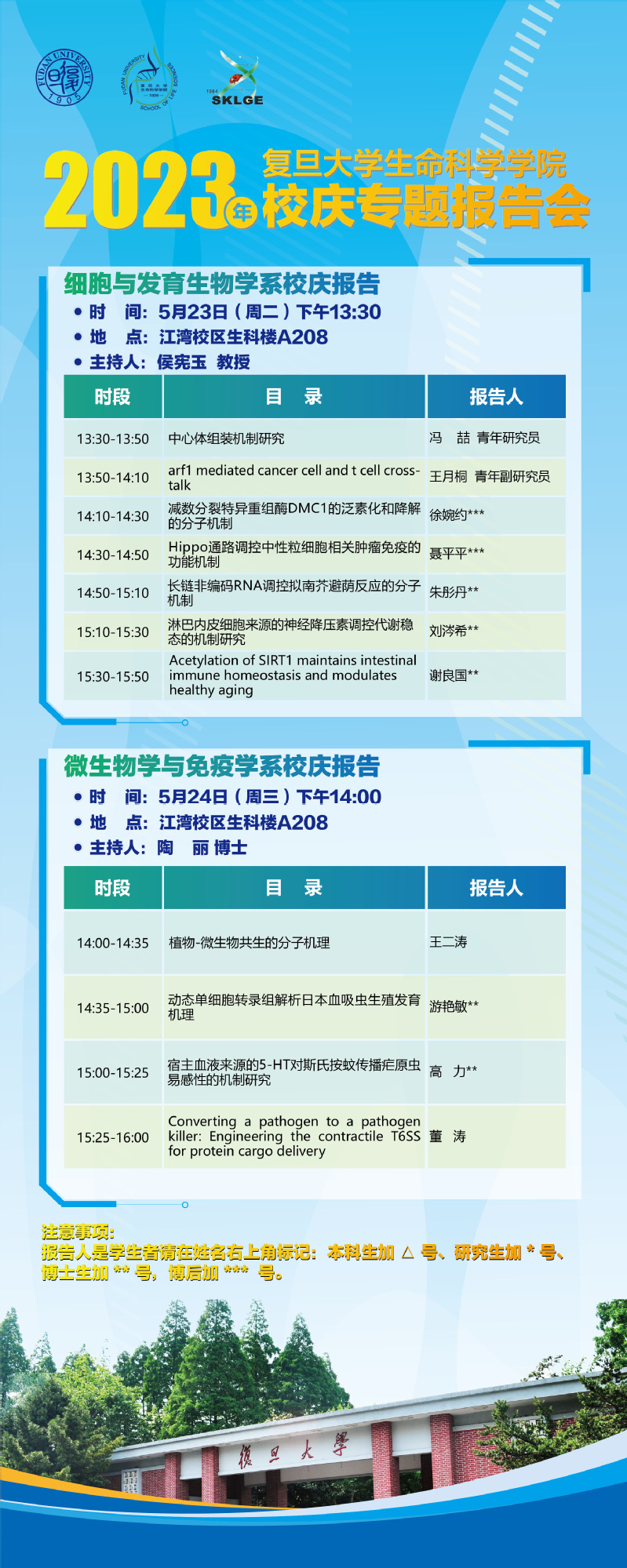 时间:5月23日(周二)上午9:00 地点:江湾校区生科楼F报告厅