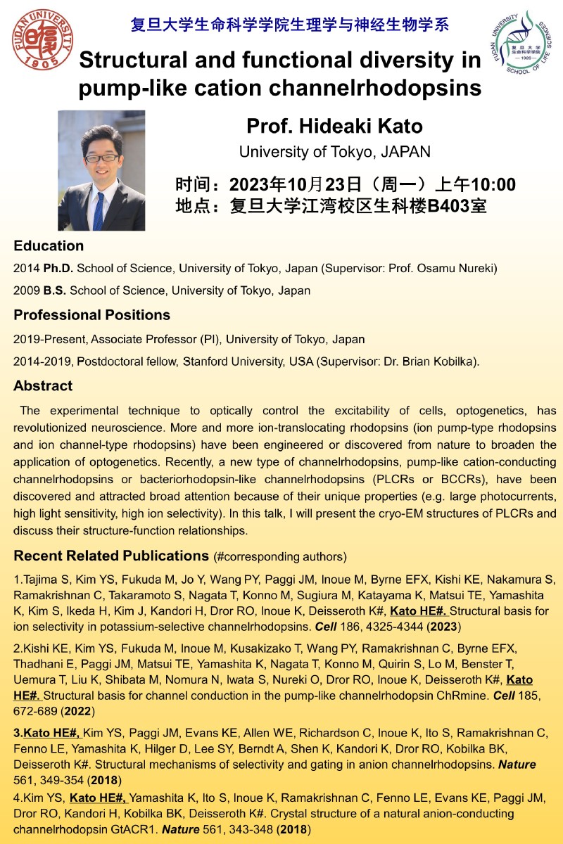 生理系学术报告-2023-10-23(周一)10:00,Hideaki Kato 副教授(东京大学)