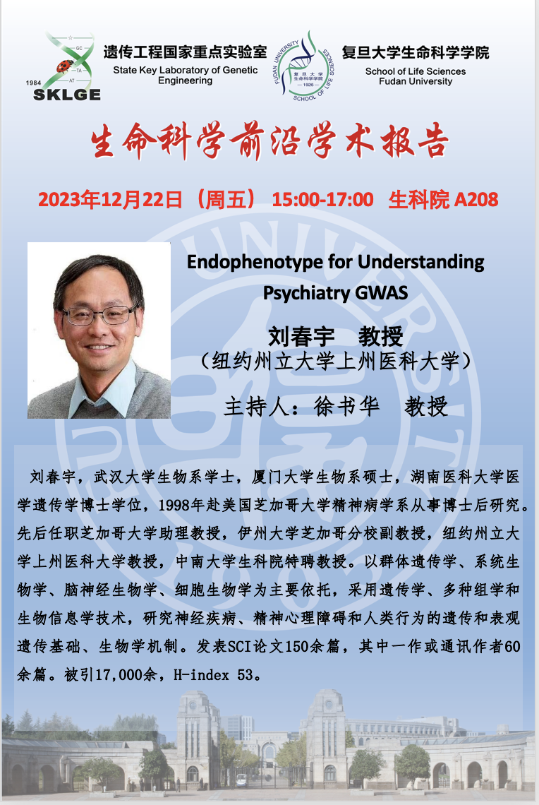 生命科学前沿学术报告-2023-12-22(周五),刘春宇 教授(纽约州立大学上州医科大学),生科院A208