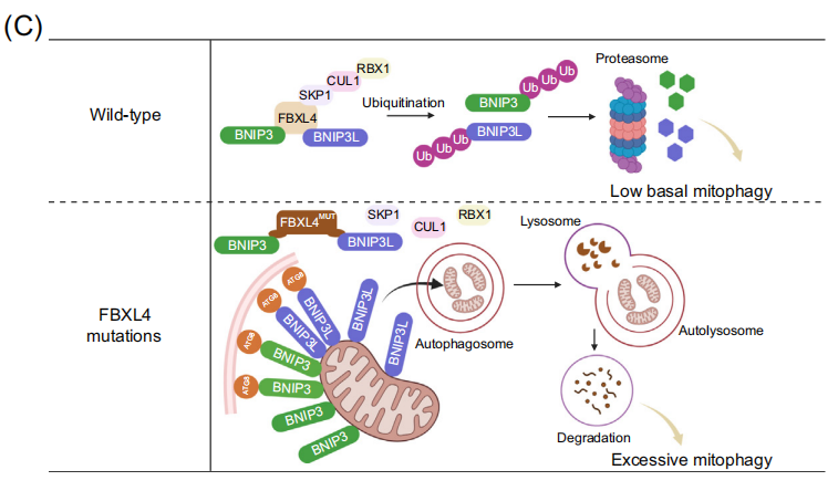 2023年12月20日,bv伟德国际体育王陈继团队和上海市第一妇婴保健院高昆团队应邀在Trends in Molecular Medicine杂志发表了题为Excessive BNIP3/BNIP3L-dependent mitophagy drives FBXL4 mutation-caused mitochondrial DNA depletion disease的综述,概括了MTDPS 13亚型(MTDPS13)致病基因FBXL4突变导致线粒体自噬过度激活的内在分子机制,并讨论了这种致命遗传疾病的潜在治疗策略。