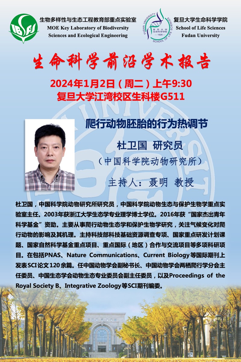 生命科学前沿学术报告-2024-1-2 (周二)杜卫国 研究员(中国科学院动物研究所),生科院G511