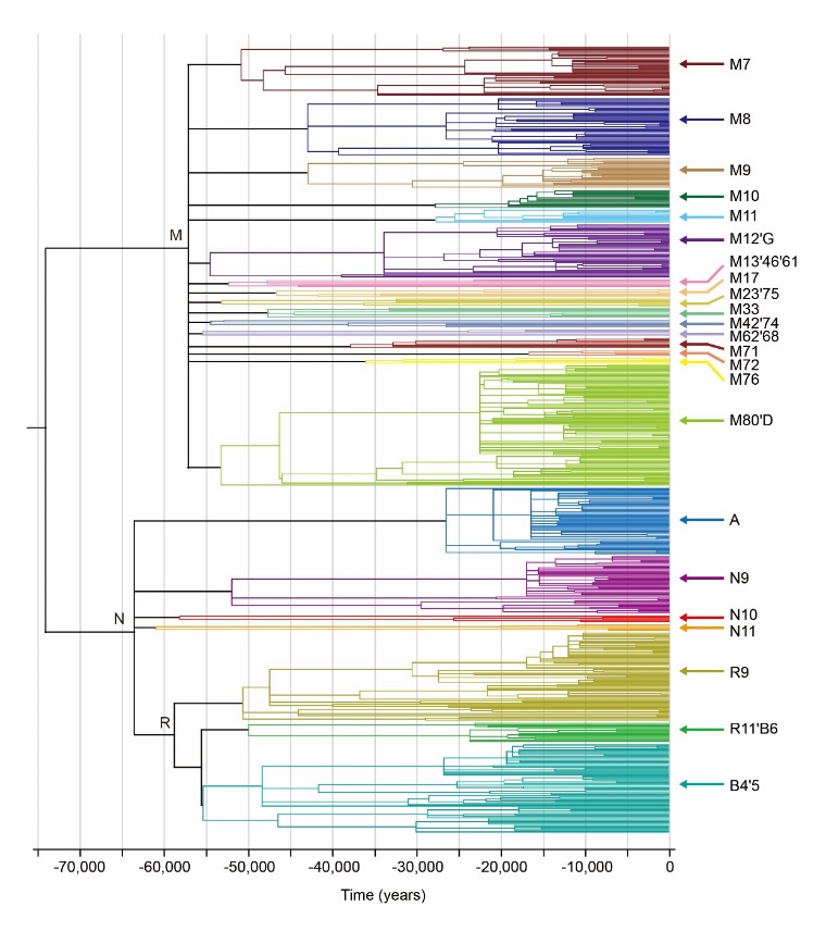 在进化中,负向自然选择作用可清除包括非同义突变在内的有害突变,其强度与人类基因组中的突变负荷密切相关。突变负荷对人类疾病的发生起着重要作用,故阐明负向自然选择效应是人类进化遗传学中的一个重要科学问题。现代人类在过去的几千年中经历了爆炸式的人口增长,而人群的主扩张阶段可能开始于旧石器时期晚期。末次冰盛期的终结(距今约22,000-20,000年前)以及农业的产生和发展(距今约11,000-4,000年前)一方面可促使人群扩张;另一方面也使现代人的生存环境发生重大改善,推测可使负向选择效应减弱,但后者尚缺乏遗传学证据。2024年8月20日,复旦大学金力院士和郑鸿翔副研究员团队在国际顶尖进化生物学期刊《分子生物学与进化》(Molecular Biology and Evolution)发表题为“MtDNA genomes reveal relaxed purifying selection during human population expansion after the Last Glacial Maximum”的研究论文。该研究整合了超过三万个全球人群线粒体基因组数据,通过系统进化分